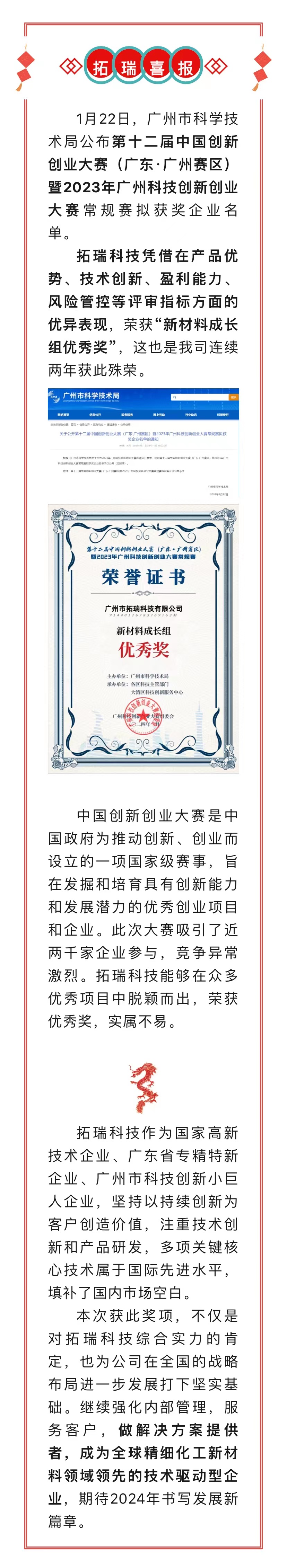 喜報!熱烈祝賀拓瑞科技榮獲第十二屆中國創(chuàng)新創(chuàng)業(yè)大賽(廣東·廣州賽區(qū))優(yōu)秀獎