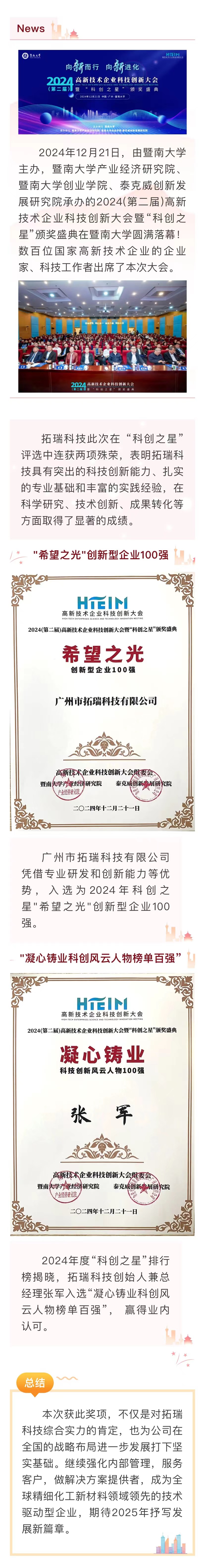 喜報(bào)|拓瑞科技榮獲2024年度“科創(chuàng)之星”——?jiǎng)?chuàng)新型企業(yè)100強(qiáng)!